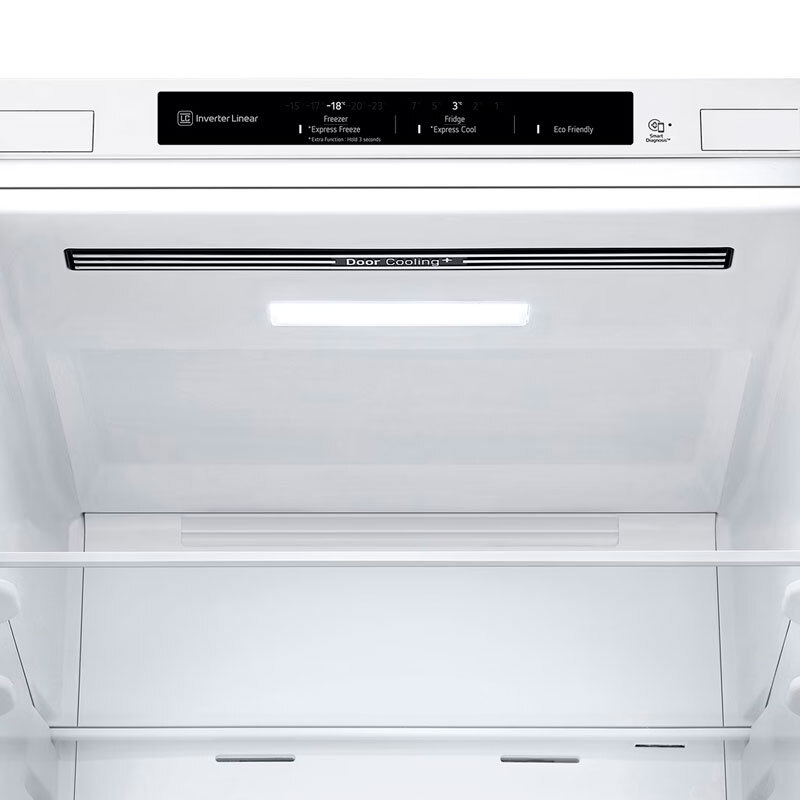 DoorCooling? Enfría más rápido y de manera uniforme. Único con cascada de aire frío en la parte superior frontal del frigorífico que permite enfriar bebidas y alimentos más rápido y reduce la diferencia de temperatura entre el interior y la puerta del frigorífico.