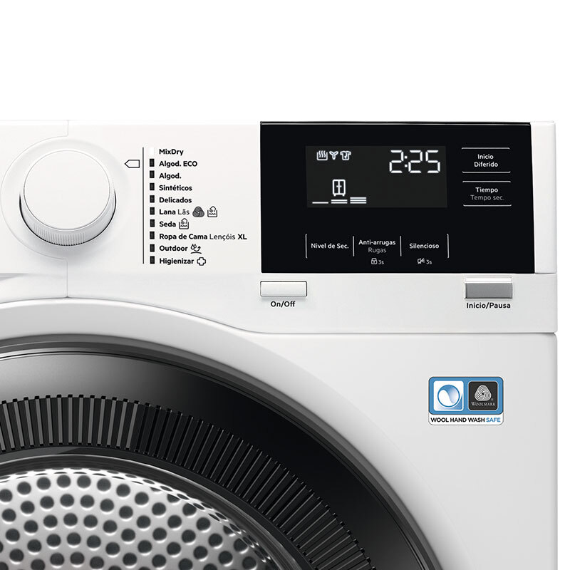 AbsoluteCare®. No encoge, garantizado AbsoluteCare® usa una bomba de calor y controla el movimiento y la temperatura del tambor para un secado seguro, hasta en prendas delicadas. Garantiza que la lana y la seda no pierdan su forma. Con Woolmark Blue, se restablece la protección impermeable de las prendas de exterior.