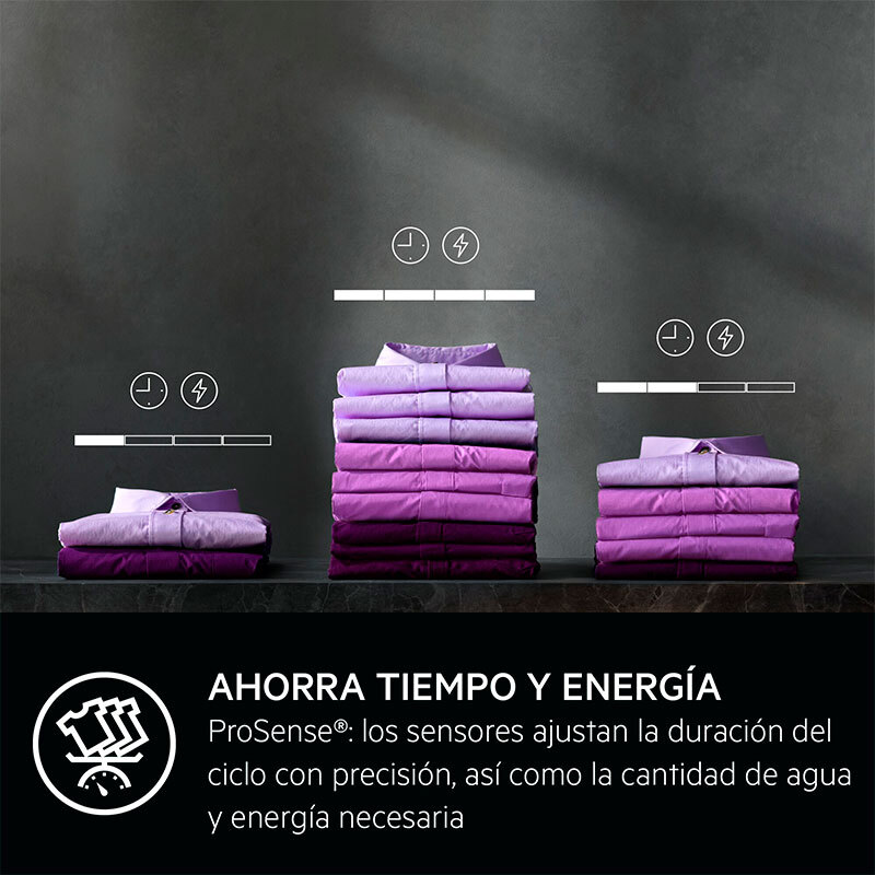 Secado por sensores (automático): La electrónica de esta secadora detecta la humedad de los tejidos y finaliza el ciclo de secado cuando la humedad residual coincide con el nivel de secado requerido